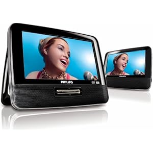 Play your music and movies in the car! The PET7402 features two 7" TFT LCD display screens that let you indulge in enjoying your DVD movies, music, and photos on the road, with everything you need to easily install and mount to the headrests in your car. Includes AC/DC adaptor, AV cable, car charger and headrest mounting straps.
